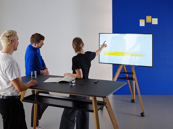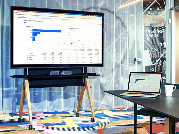 Gerade bei einer hybriden Besprechung sollten sich alle Teilnehmenden gleichberechtigt fühlen - ob vor Ort oder remote. Die Kameraposition, die Bildschirmgröße und das Audiosystem müssen so ausgelegt sein, dass Remote-Teilnehmende sehr gut gesehen und gehört werden. Gleiches gilt natürlich auch für die Teilnehmenden vor Ort.